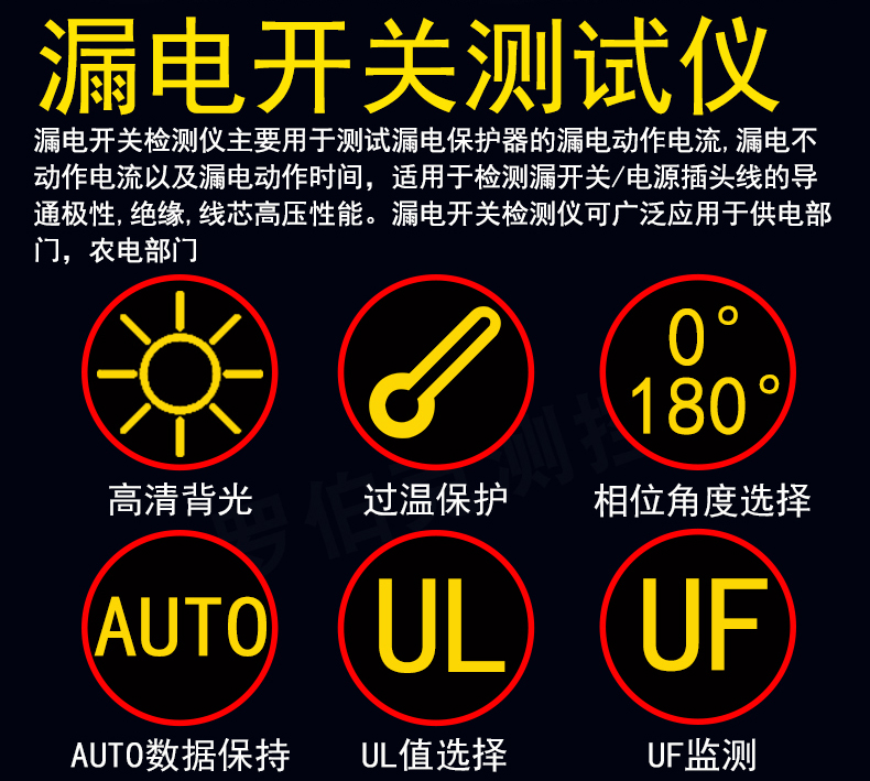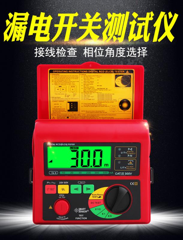 漏電開關測試儀主要用于測試漏電保護器的漏電動作電流,漏電不動作電流以及漏電動作時間,