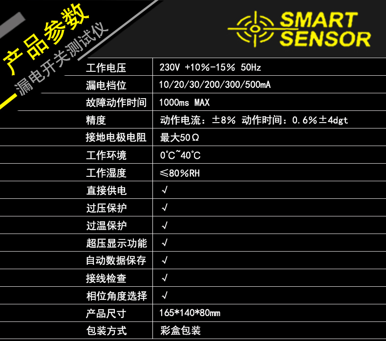 | 漏電檔位 | 10/20/30/200/300/500mA |