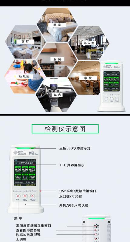 可測試:PM2.5粉塵顆粒,PM10粉塵顆粒,TVCO有機揮發物,C6H6苯