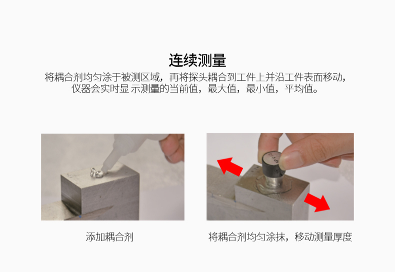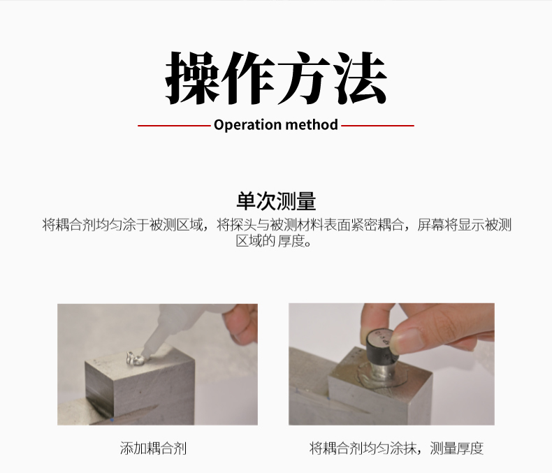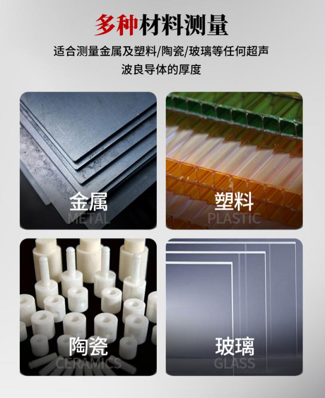 適合測量金屬(如鋼、鑄鐵、鋁、銅等)、塑料、陶瓷、玻璃、玻璃纖維及其他任何超聲波的良導體的厚度。