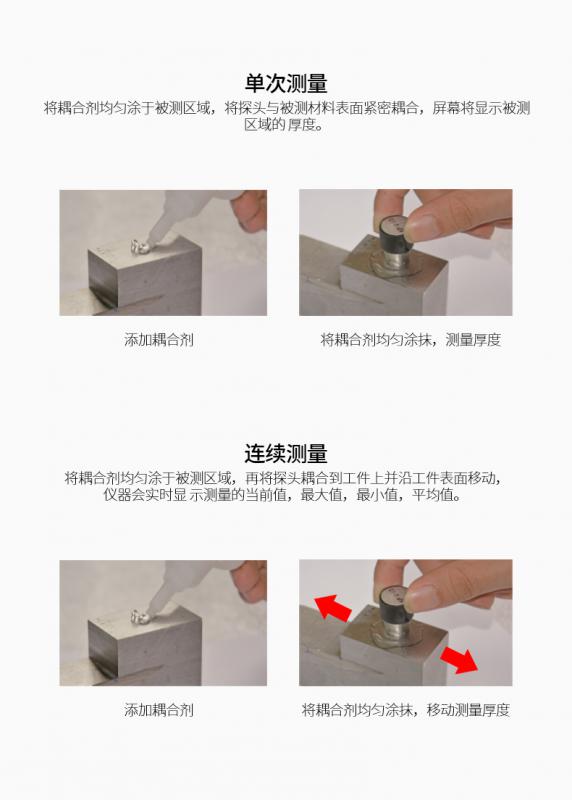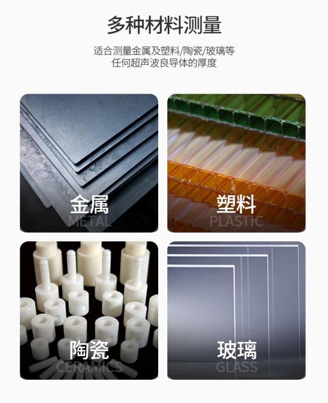 適合測量金屬(如鋼、鑄鐵、鋁、銅等)、塑料、陶瓷、玻璃、玻璃纖維及其他任何超聲波的良導體的厚度。