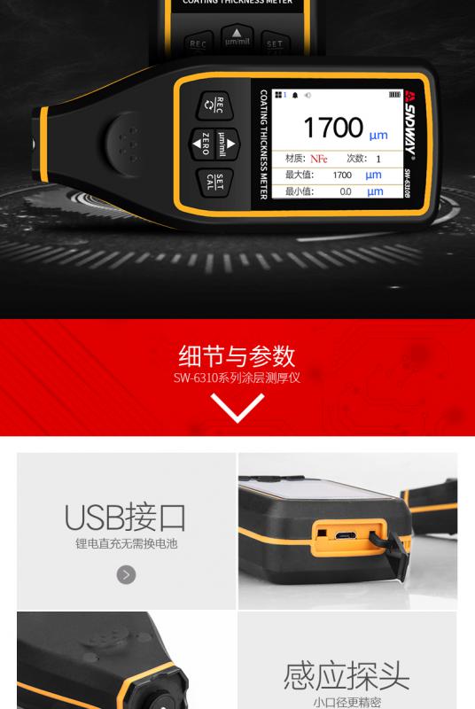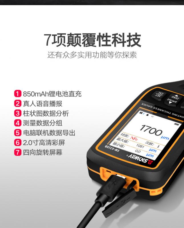 及非磁性金屬基體(如銅、鋁、鋅、錫等)上非導電覆層的厚度(如:琺瑯、橡膠、油漆、塑料等)。