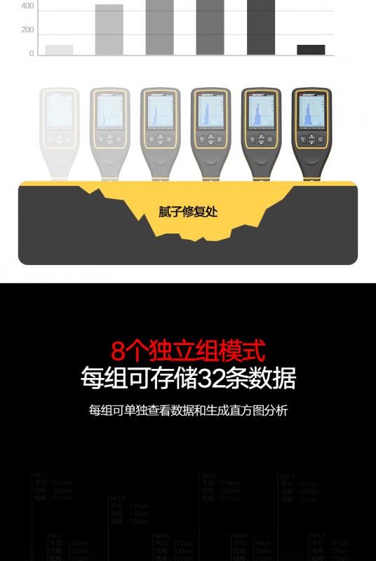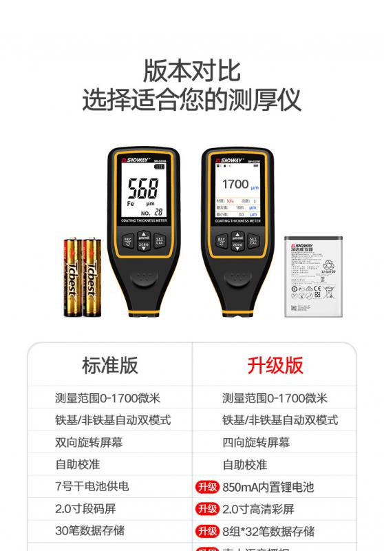 測量范圍:0-1700um,測量誤差:±(2+2%*H)μm @ (0~500μm),±(2.5%*H)um @ (500~1700um)