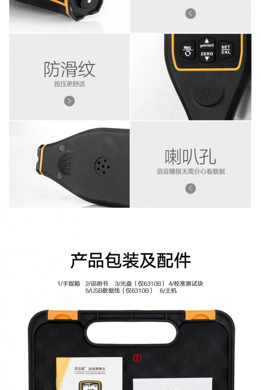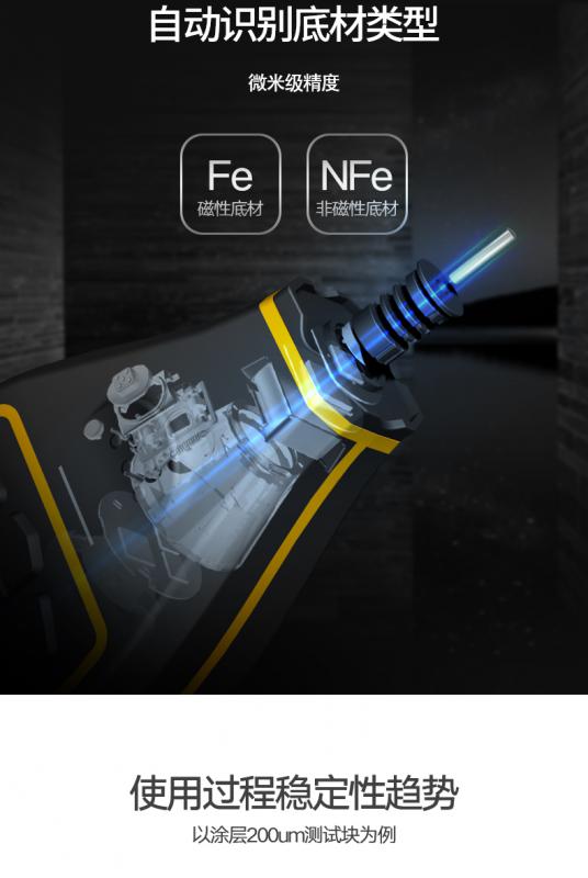 及非磁性金屬基體(如銅、鋁、鋅、錫等)上非導電覆層的厚度(如:琺瑯、橡膠、油漆、塑料等)。