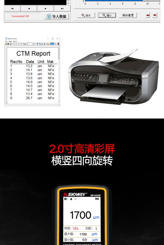 涂鍍層測厚儀具有測量誤差小、可靠性高、穩(wěn)定性好、操作簡便等特點,是控制和保證產品質量必不可少的檢測儀器,廣泛地應用在制造業(yè)、金屬加工業(yè)、化工業(yè)、商檢等檢測領域。