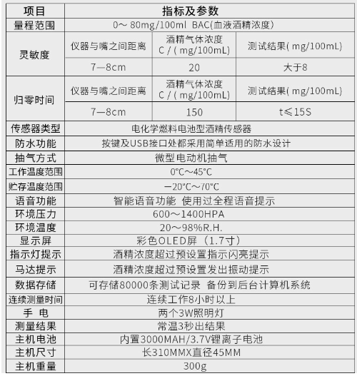 量程范圍:0~ 80mg/100ml,酒精氣體濃度c/(mg/100mL):20
