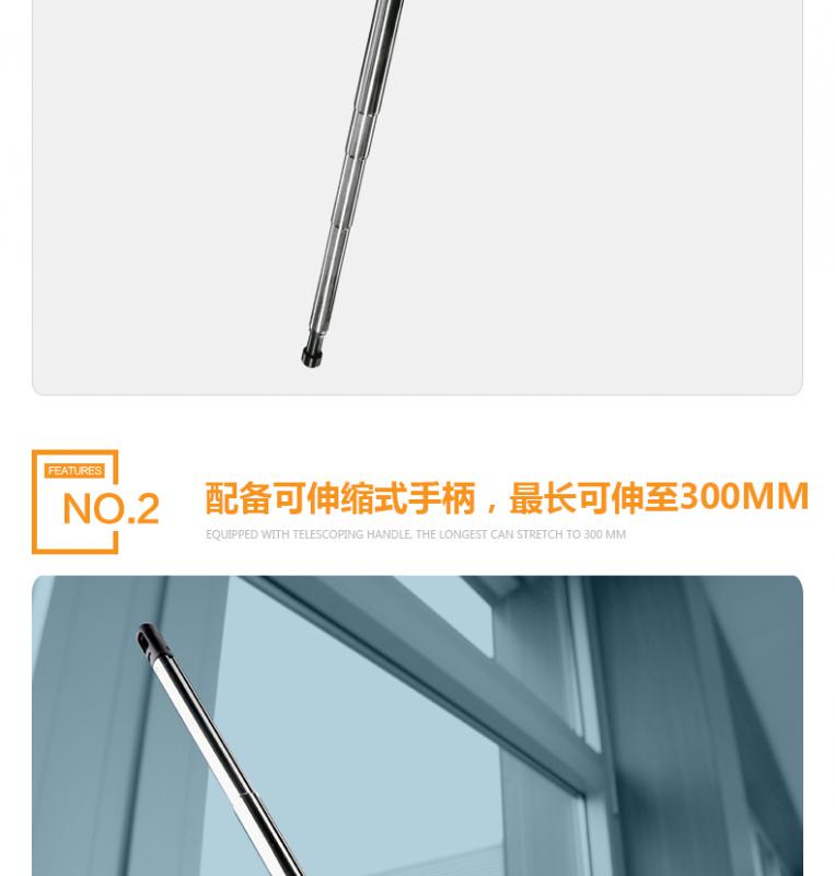由于配備可伸縮式手柄(可延伸至300mm),適于通風管內的流量測量。背光顯示可旋轉至各個位置,從而讓讀數一目了然。標配管道支架可伸縮式手柄置于通風管的測量位置,獲得精準的測量結果。
