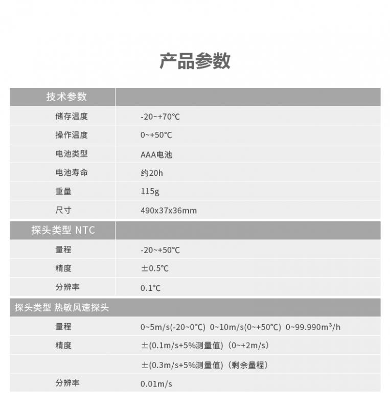 | 測量精度 | ±(0.1 m/s + 5 %測量值) (0 ~ 2 m/s) |