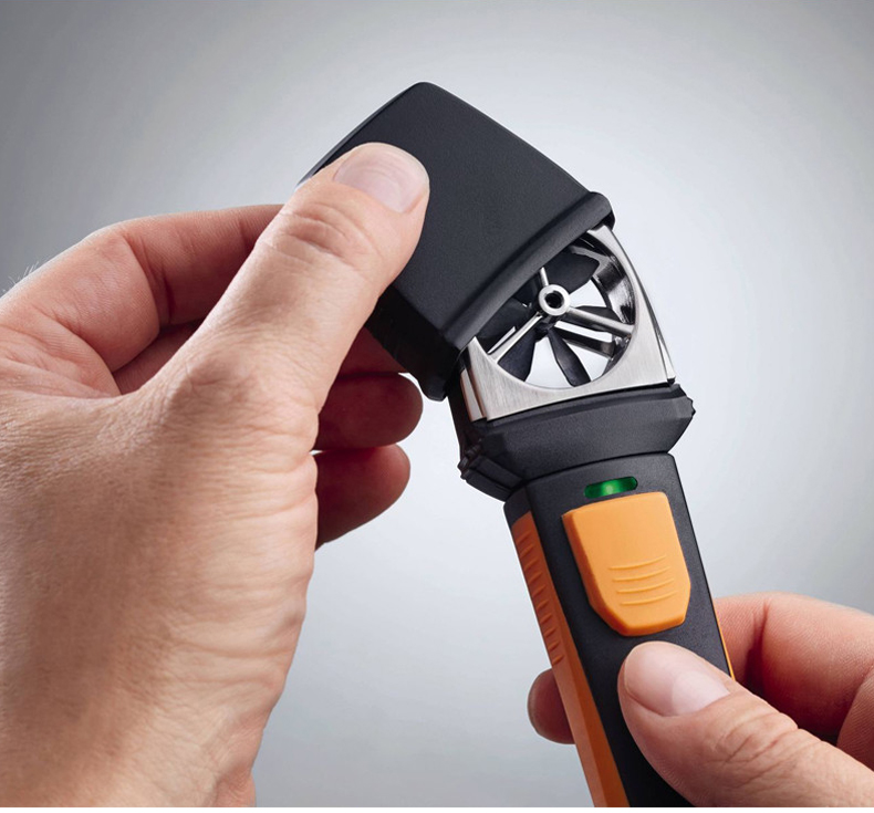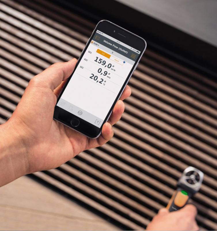 testo 410i無線迷你葉輪式風速測量儀用于測量空氣出口的體積流量、空氣流速和溫度。testo Smart Probe APP快速方便查看讀數,并提供智能化的附加功能。