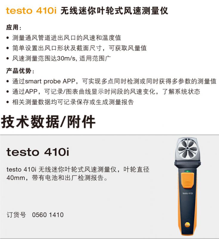 testo410i無線迷你葉輪式風速測量儀產品價格: