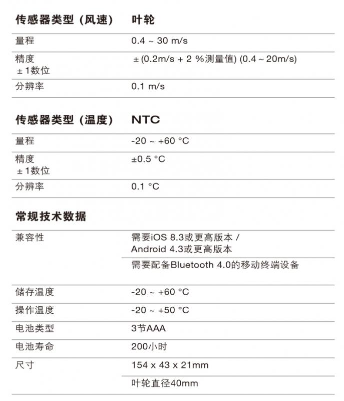 | 測量范圍 | 0.4 ~ 30 m/s |