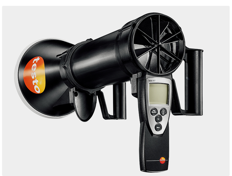 0.1 ~ +200 m/h , preferred 0,1 to 100 m/h (testo 417 in combination with funnel & flow straightener (0554 4172))