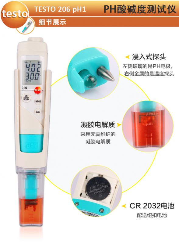 液體pH酸堿度絕佳工具:精密型testo 206-pH1 pH酸堿度/溫度測量儀采用創(chuàng)新探頭技術(shù),尤其適用于食品領(lǐng)域。