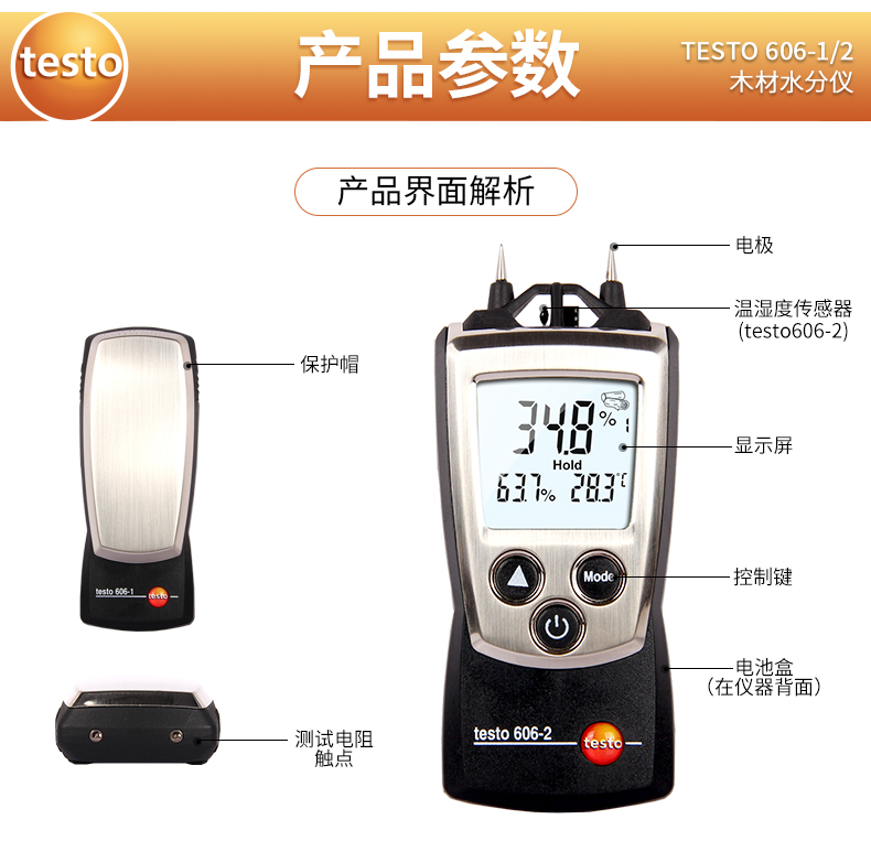 testo 606-2水份檢測儀可進(jìn)行木材及建筑材料的水份測量以及環(huán)境溫濕度測量。您現(xiàn)在可以快速簡便的檢測您的倉儲及干燥環(huán)境條件。