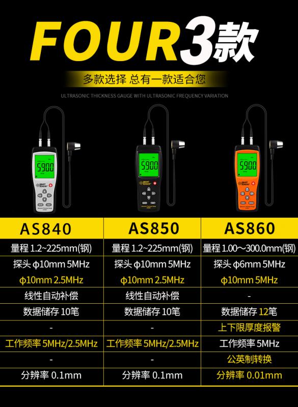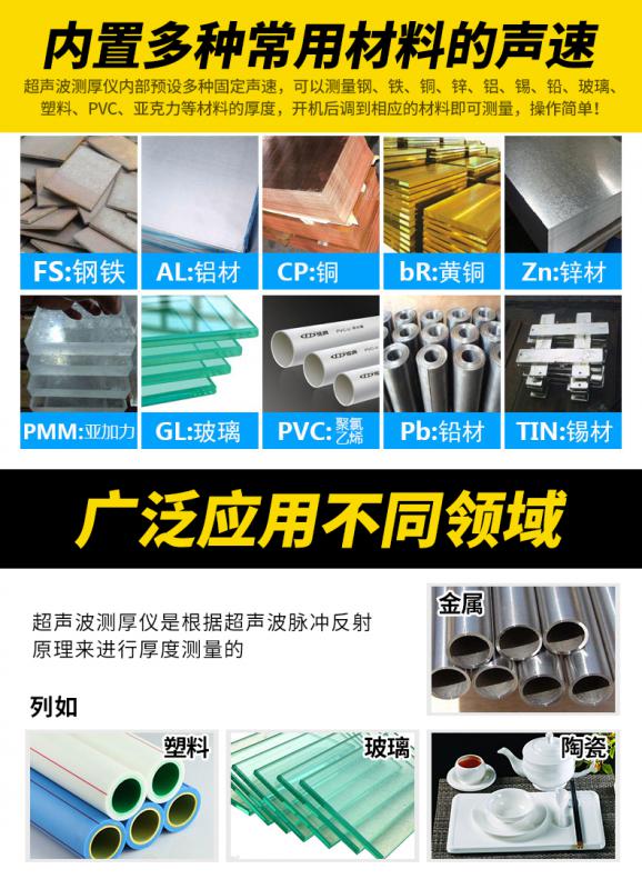 測量物體厚度的儀表。在工業生產中常用來連續測量產品的厚度(如鋼板、鋼帶、紙張等)。這類儀表中有利用α射線、β射線、γ射線穿透特性的放射性厚度計;有利用超聲波頻率變化的超聲波厚度計;有利用渦流原理的電渦流厚度計;還有電容式厚度計等。而利用微波和激光技術制成厚度計,目前還處在研制、試驗階段。