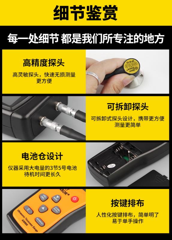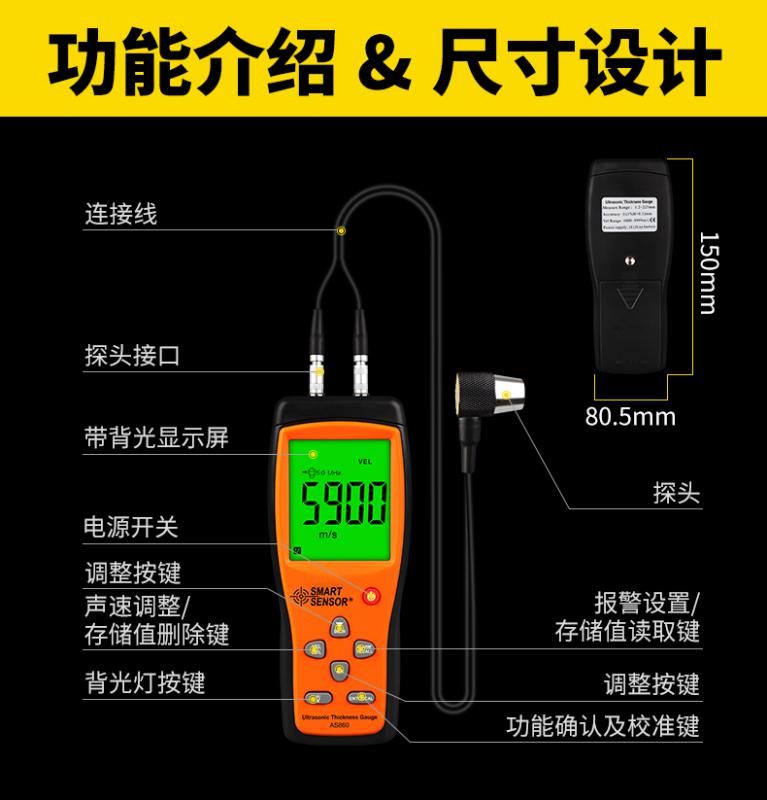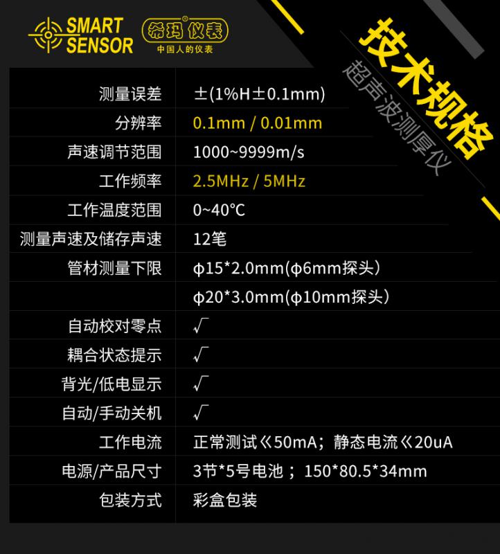 希瑪超聲波鋼板測厚儀數顯高精度金屬玻璃厚度檢測管道壁厚測量儀