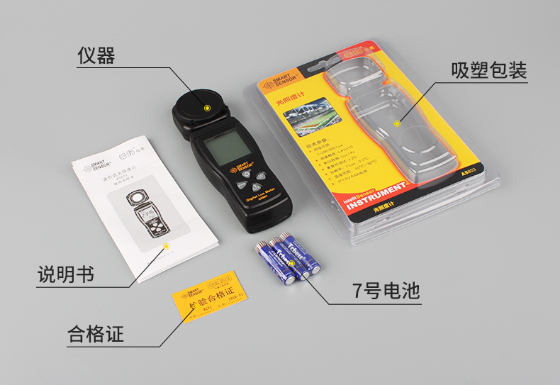 照度計(jì)(或稱勒克斯計(jì))是一種專門測量光度、亮度的儀器儀表。就是測量光照強(qiáng)度(照度) 是物體被照明的程度,也即物體表面所得到的光通量與被照面積之比。照度計(jì)通常是由硒光電池或硅光電池和微安表組成。