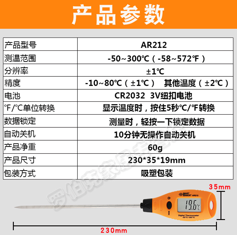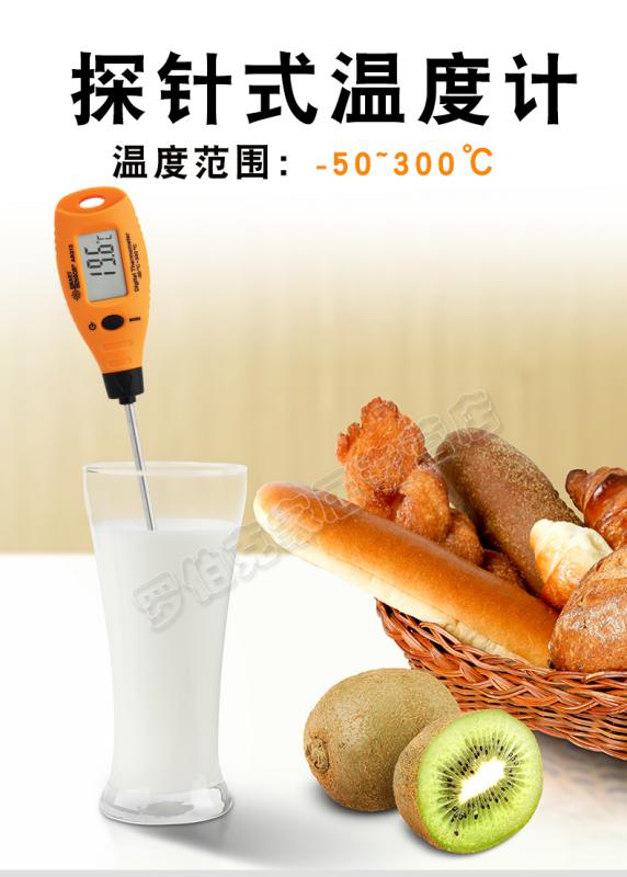 探針式測溫儀筆型結構,不銹鋼探頭,直接測量,便于攜帶。適用于制冷、制熱、食品加工、橡塑加工等多個領域。