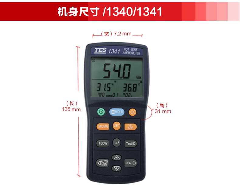 風速測量范圍:0.1~30.0 m/s ,分辨率:0.01 m/s,風量測量范圍是0~999900CFM,數據鎖定及最大值、最小值含發生時間記錄功能