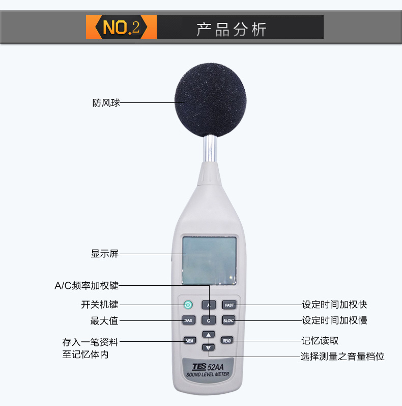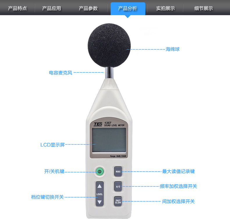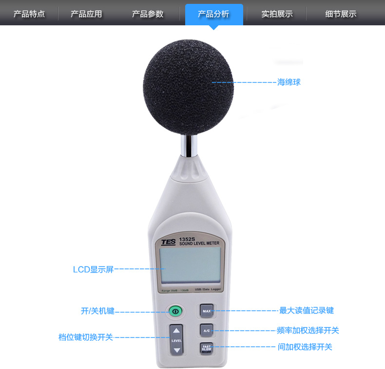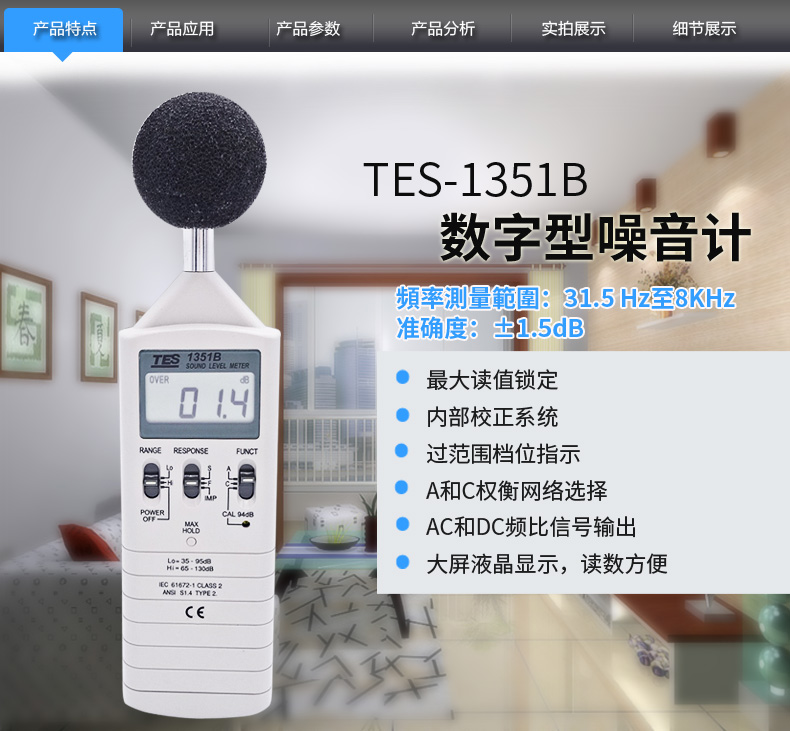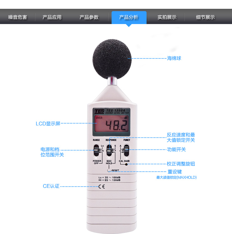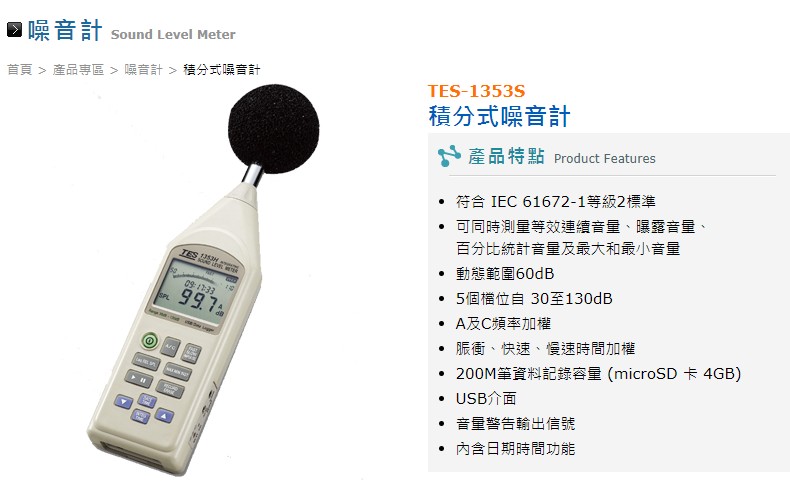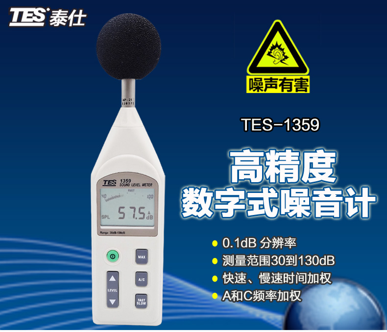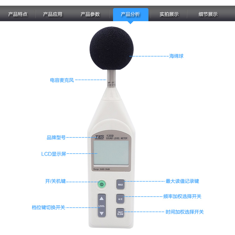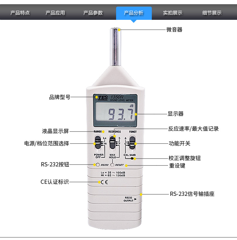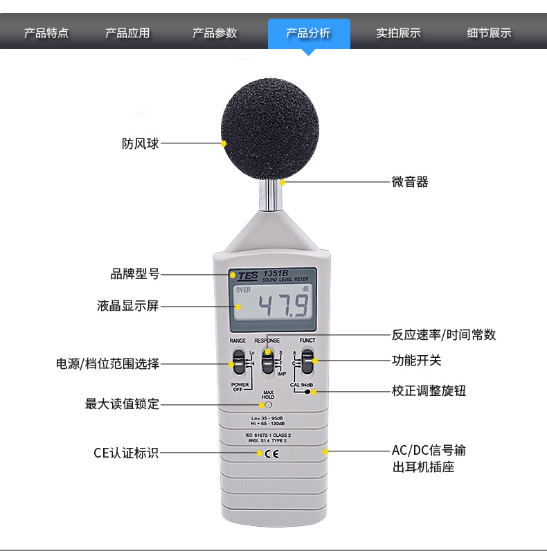 量程:30~130dB,分辨率:0.1dB,準確度:±1.5dB