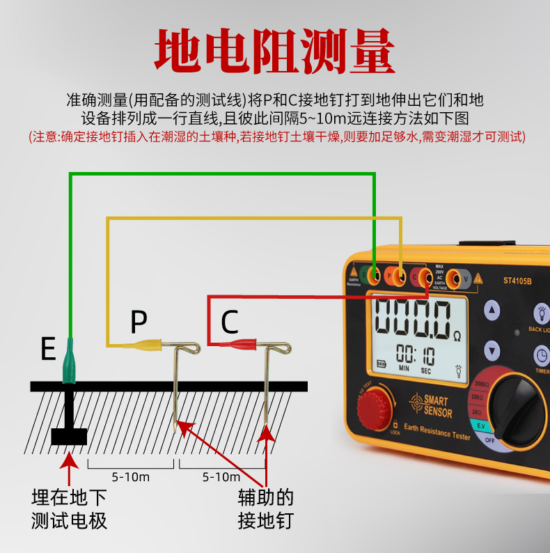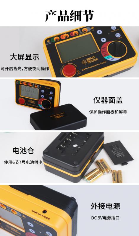 接地電阻表是用來測試電力、郵電、鐵路、通信、礦山等部門測量各種裝置的接地電阻以及測量低電阻的導體電阻值及地電壓。