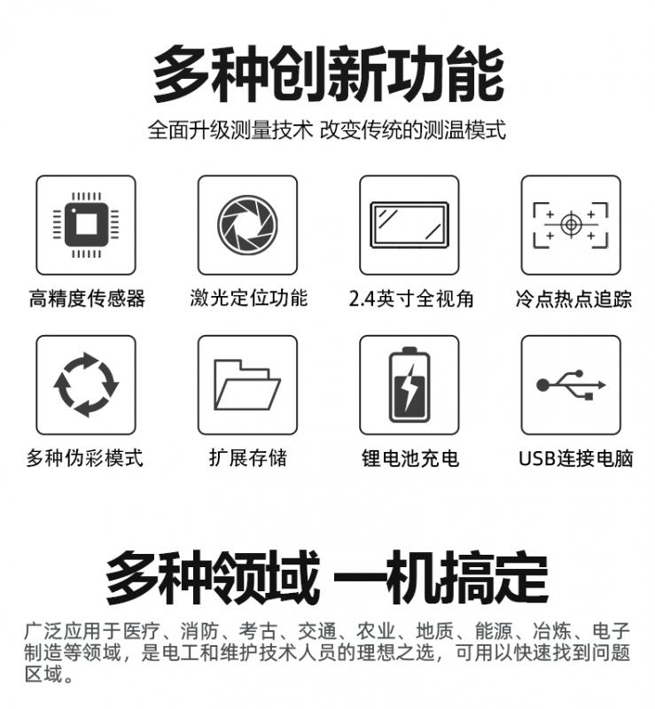 手持測溫熱像儀(以下簡稱熱像儀)是具有熱成像圖像的手持測溫產品,支持測溫、抓圖、偽彩顏色設置等功能。可以有效探測溫度變化,對環境中的目標進行精準測溫。熱像儀根據人體工程學設計原理,握持操作,可廣泛應用于電力、冶金、機械設備、管道、數據中心設備等預防性檢測,也可用于建筑、科研領域檢測、消防領域的救援工作等多種場景