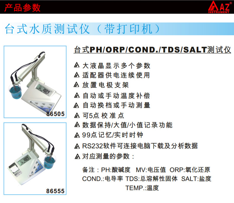AZ86505 多合一水質檢測儀產品價格: