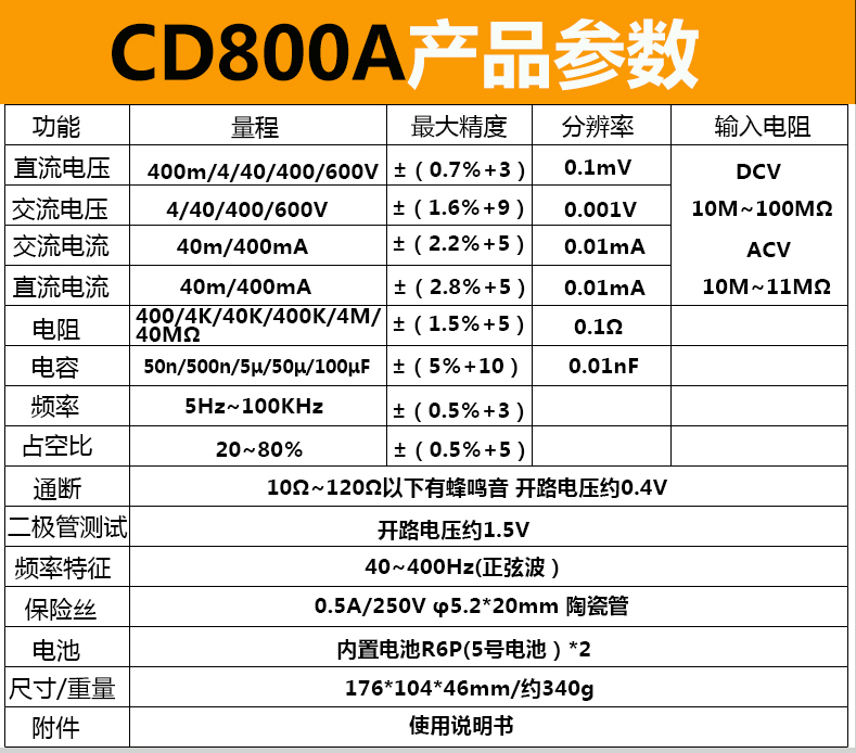 交直流電壓、電阻、通斷、二極管測(cè)量