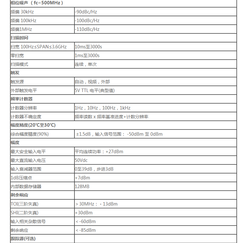 頻率范圍:9kHz ~ 3.6GHz;分辨率:1Hz;分辨率帶寬范圍:10Hz至3MHz ,最低可定制: 1Hz至10Hz