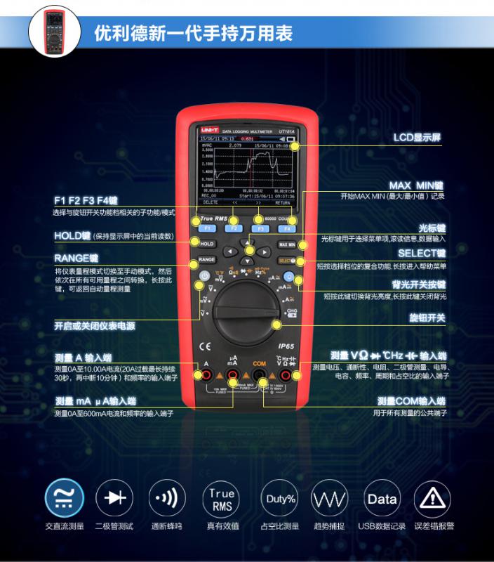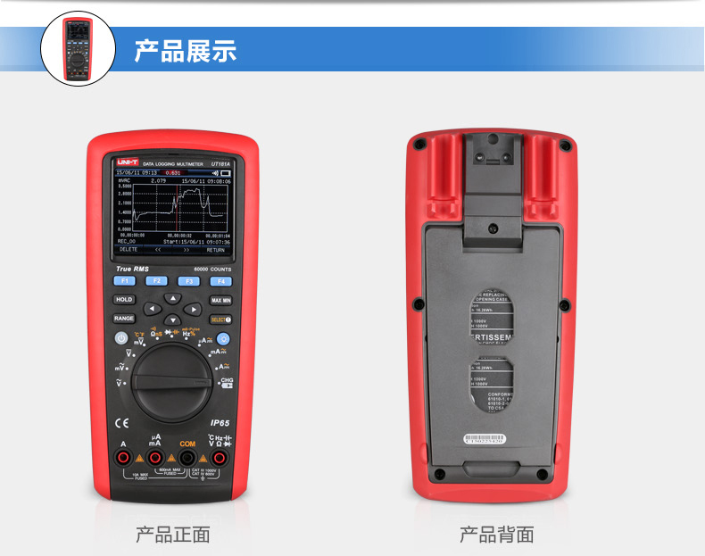 直流電壓,交流電壓:60mV/600mV/6V/60V/600V/1000V;頻率10Hz~60Hz;溫度-40~1000℃