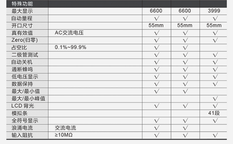 交直電流:40A~1000A;交直電壓:400mV-600V;電阻400Ω~40MΩ;最大顯示:3999