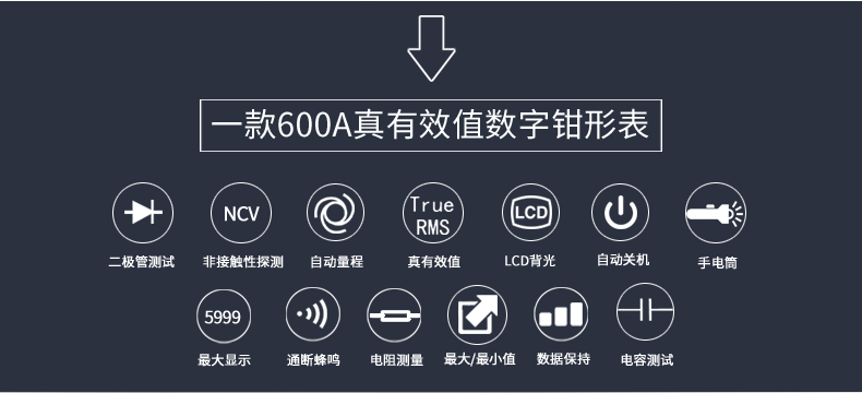 交直電流:60A~600A;電阻:600Ω~60MΩ;頻率10Hz~1MHz;溫度:-40~1000℃