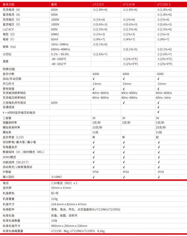 交流電流:600A;交直電壓:1000V;電阻:60MΩ;頻率10Hz~10MHz