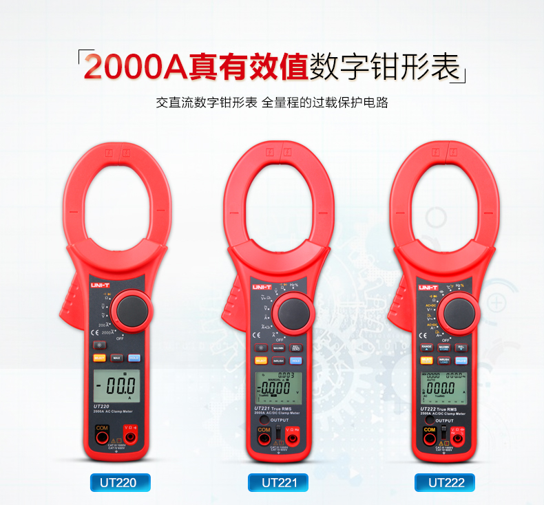 交流電流:200A~2000A;交直電壓:2V/20V/200V/750V;電阻:200Ω~20MΩ