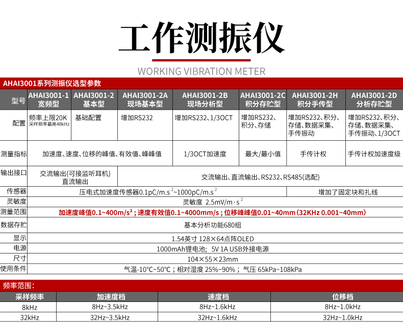 | 主要測量指標 | apeak,a_rms,a_p-p,vpeak,v_rms,v_p-p,dpeak,d_rms,d_p-p,Vla,T,a_max,v_max,d_max,Vla_max,a_min,v_min,d_min,VLa_min,頻率指示 | ||||||||||||