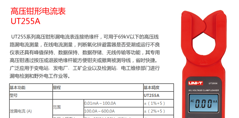 泄露電流:0.01mA~600.0A;電壓0V~69KV;頻率50Hz/60Hz