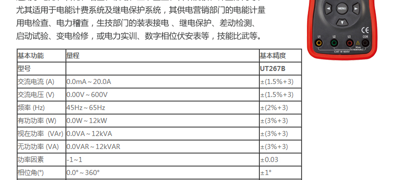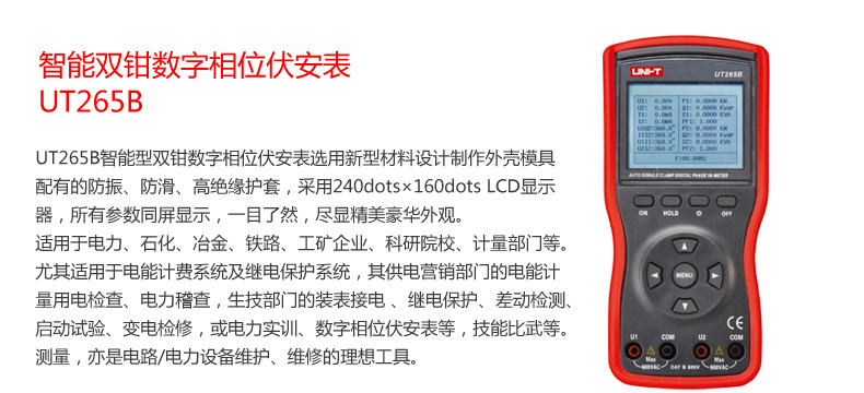 UT265B 智能雙鉗數字相位伏安表產品價格: