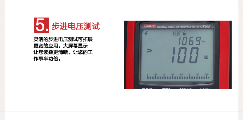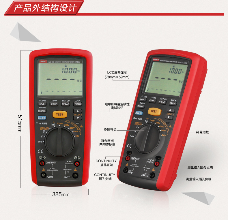 輸出電壓:50V/100V/250V/500V/1000V,直流電壓:0.0V~600.0V,交流電壓:0.0V~600.0V,通用電阻0.01kΩ~1000kΩ