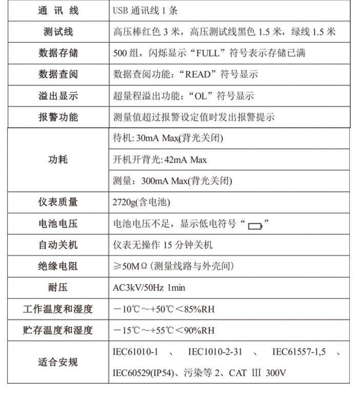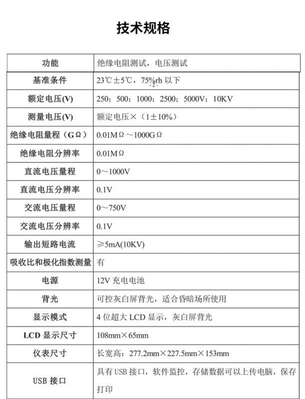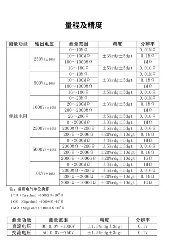 絕緣電阻:250V~10kV,直流電壓:0.0V~1000V,交流電壓:0.0V~750V
