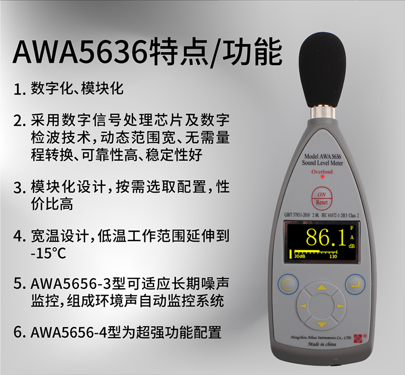 AWA5636型聲級計是一種數字化、模塊化聲級計,適用于一般噪聲測量。該儀器具有操作、使用簡單,價格便宜等特點