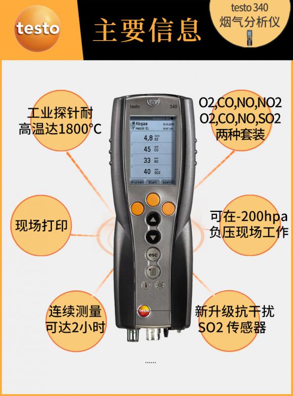 testo 340是一款操作極其簡便的緊湊型4組分煙氣分析儀。