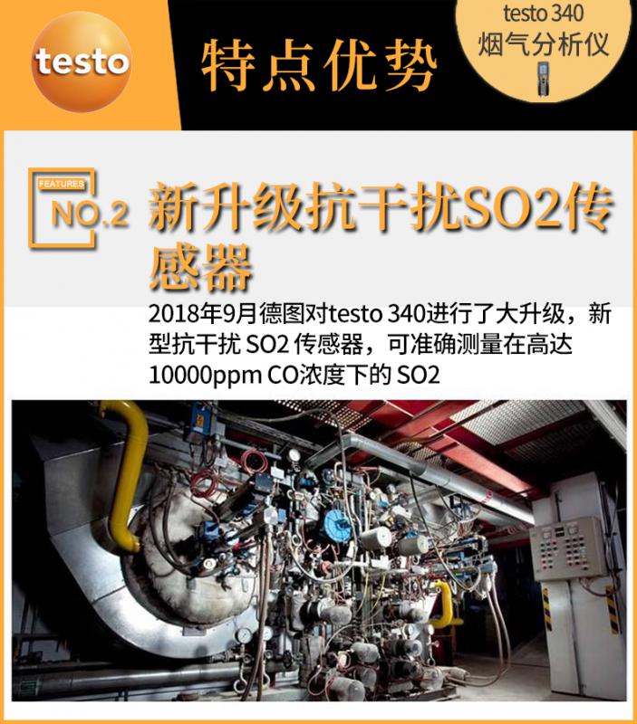2018年9月德圖對testo 340 工業煙氣分析儀進行了升級,儀器可選配新型抗干擾 SO2 傳感器,準確測量在高達 10000ppm 一氧化碳濃度下的 SO2 。同時儀器將配備中文版的操作固件,并開放藍牙通訊功能,為您的日常測量工作帶來更多便利。