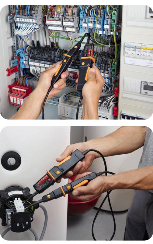testo750-2 電壓及導通測試儀采用圍繞式LED顯示您可簡單可靠地測試電氣系統與設備的電壓或斷電情況。與testo750-1電壓測試筆相比,testo750-2 電壓及導通測試儀還適用于單極相位測試,以快速確定導線是否工作。