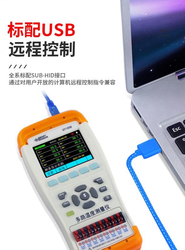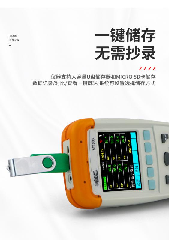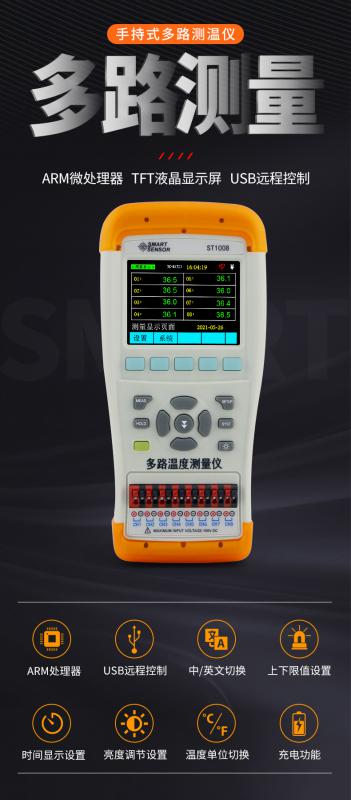 ST1004多路溫度測試儀可同時對多路溫度數據進行采集,上超下超報警和通訊傳輸,兼容多種溫度傳感器,響應速度快,數據穩定,同時具備斷偶檢測功能。而且采用高性能32位ARM微處理器控制。儀器使用真彩TFT-LCD,全中文操作界面,鍵盤和觸摸屏操作,高精度測量和簡單易用帶給用戶全新的測試體驗。儀器支持大容量USB存儲器。