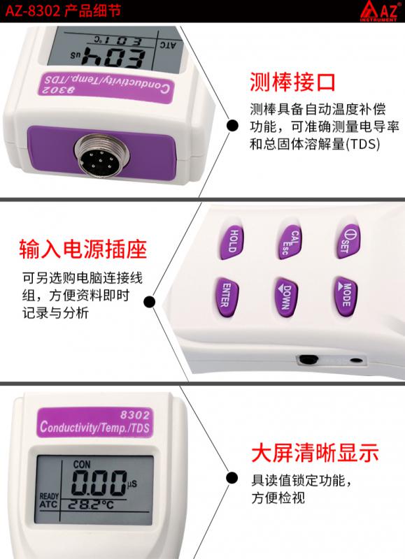 衡欣AZ8302/8306便攜式電導率儀鹽度TDS測試儀實驗室純水檢測儀產品價格: