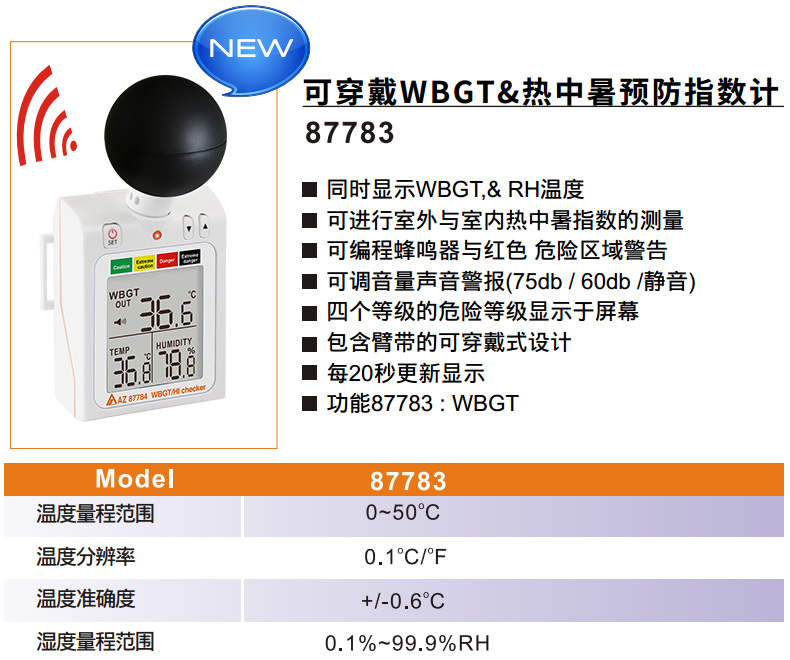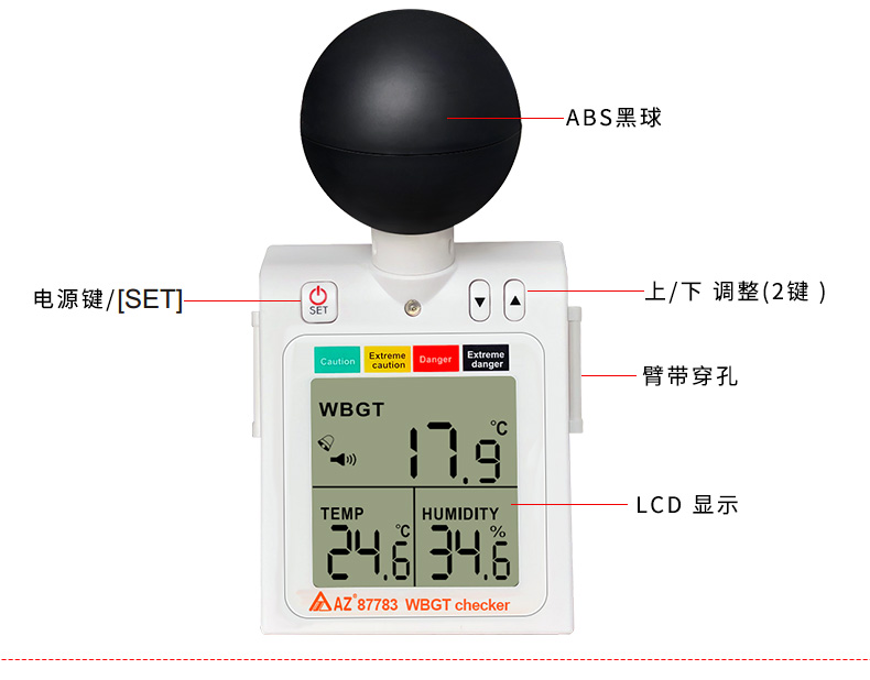 衡欣AZ87783 熱指數(shù)檢測(cè)儀戶(hù)外熱中暑預(yù)防指數(shù)計(jì)黑球濕溫度計(jì)產(chǎn)品價(jià)格: