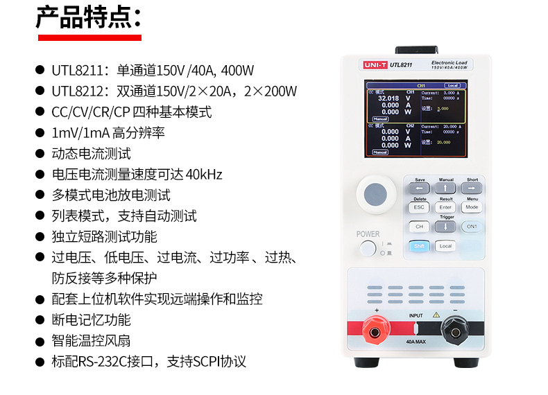 優利德UTL8211/8212直流電子負載測試儀高精度雙通道電源檢測儀產品價格: