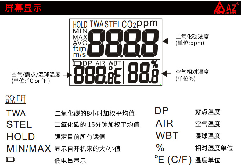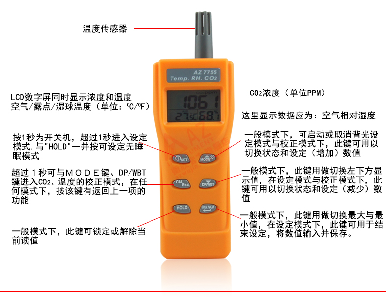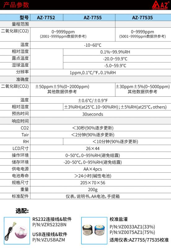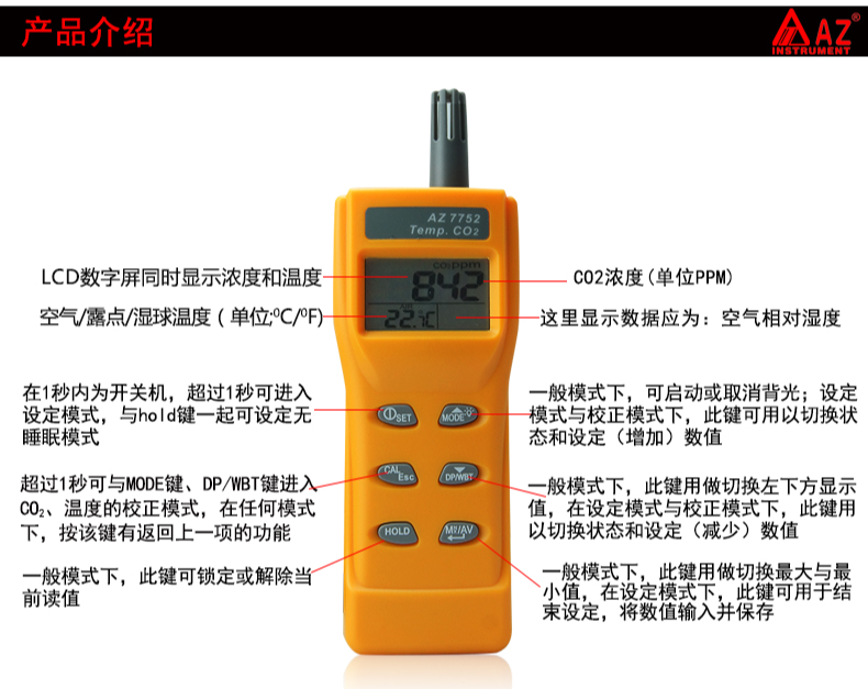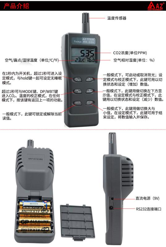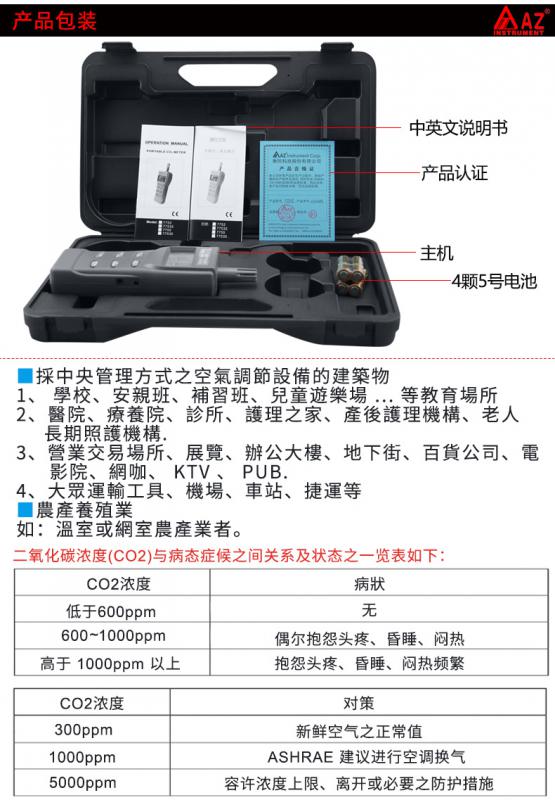 臺灣衡欣 AZ7752手持式二氧化碳檢測儀 CO2濃度檢測報警器帶溫度產品價格: