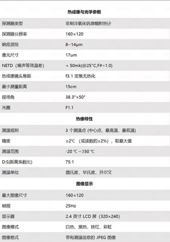 原始分辨率160*120,高靈敏度氧化釩非制冷探測器