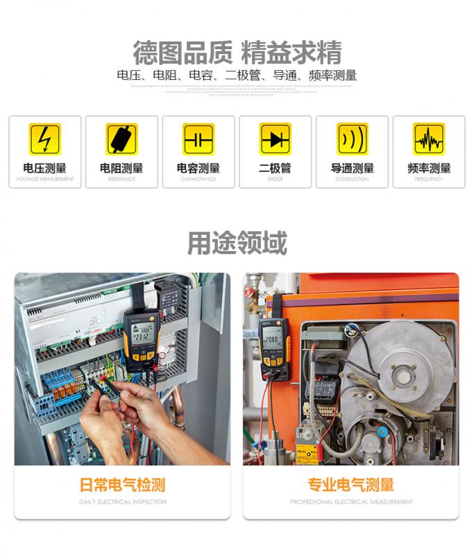 testo760-2數顯真有效值萬用表具有測量電流、電壓,電阻及電容等全面的電氣參數,并且具備微電流的測量功能,可測量小電流數據。